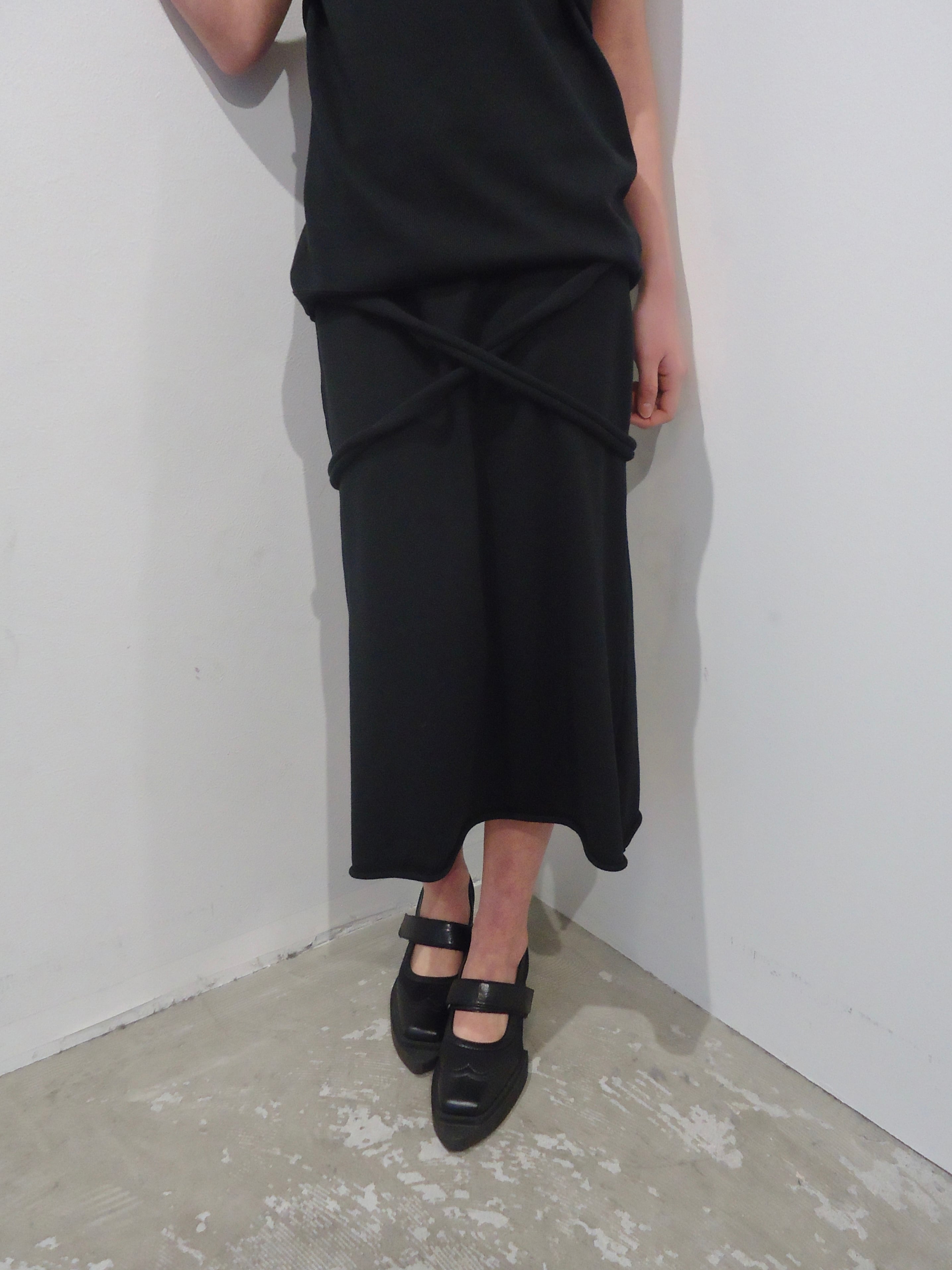 "JUUKIFF" X-LAYERED MIDI SKIRT IN COTTON : BLACK