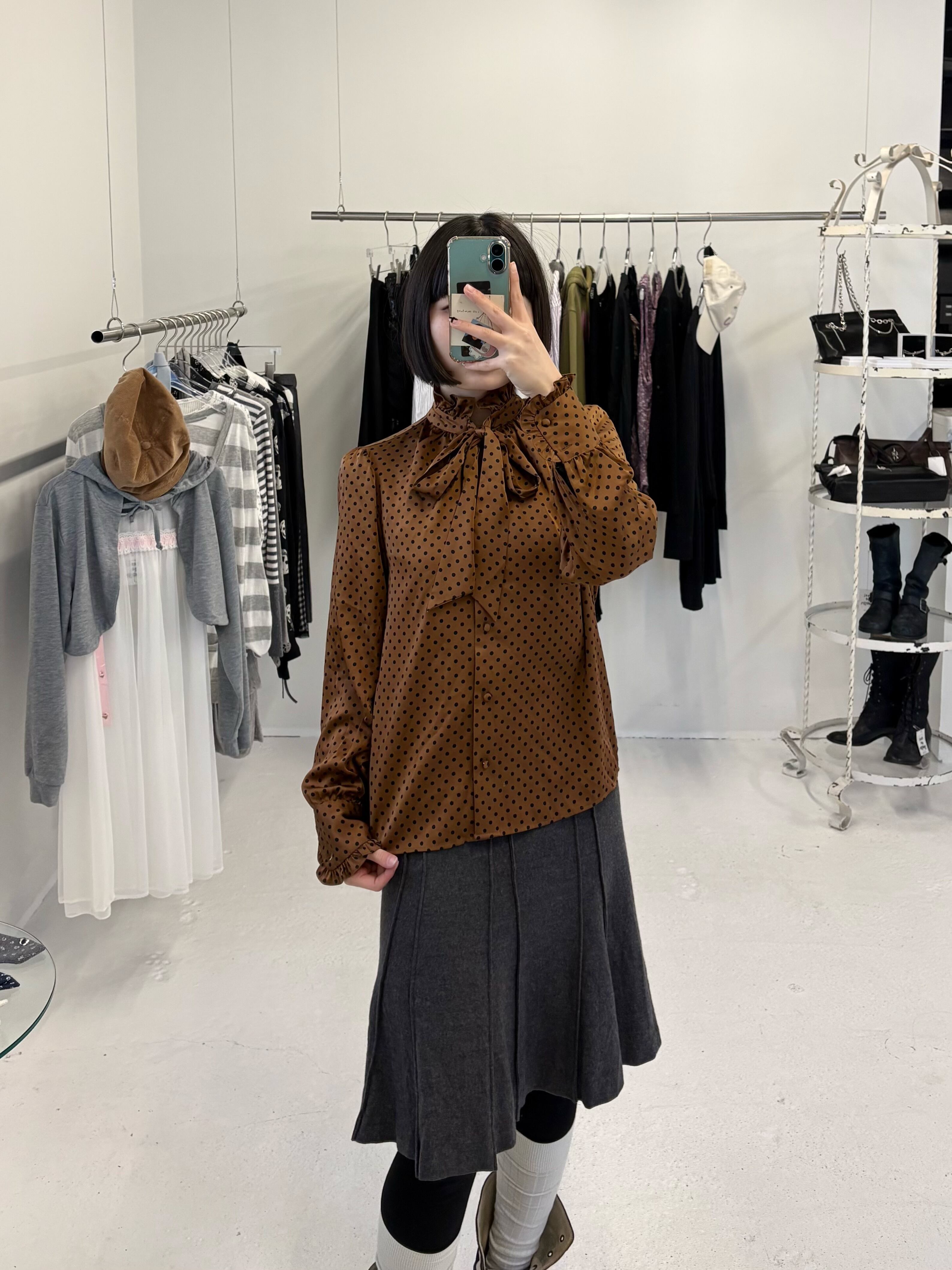 dot ribbon blouse